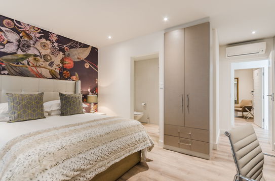Each room features a plush double bed dressed in 100% percale cotton linen, a contemporary en-suite bathroom with premium fittings, and a carefully curated range of modern amenities including a flat-screen Smart TV, complimentary Wi-Fi, air conditioning, tea and coffee-making facilities, and a private safe.
